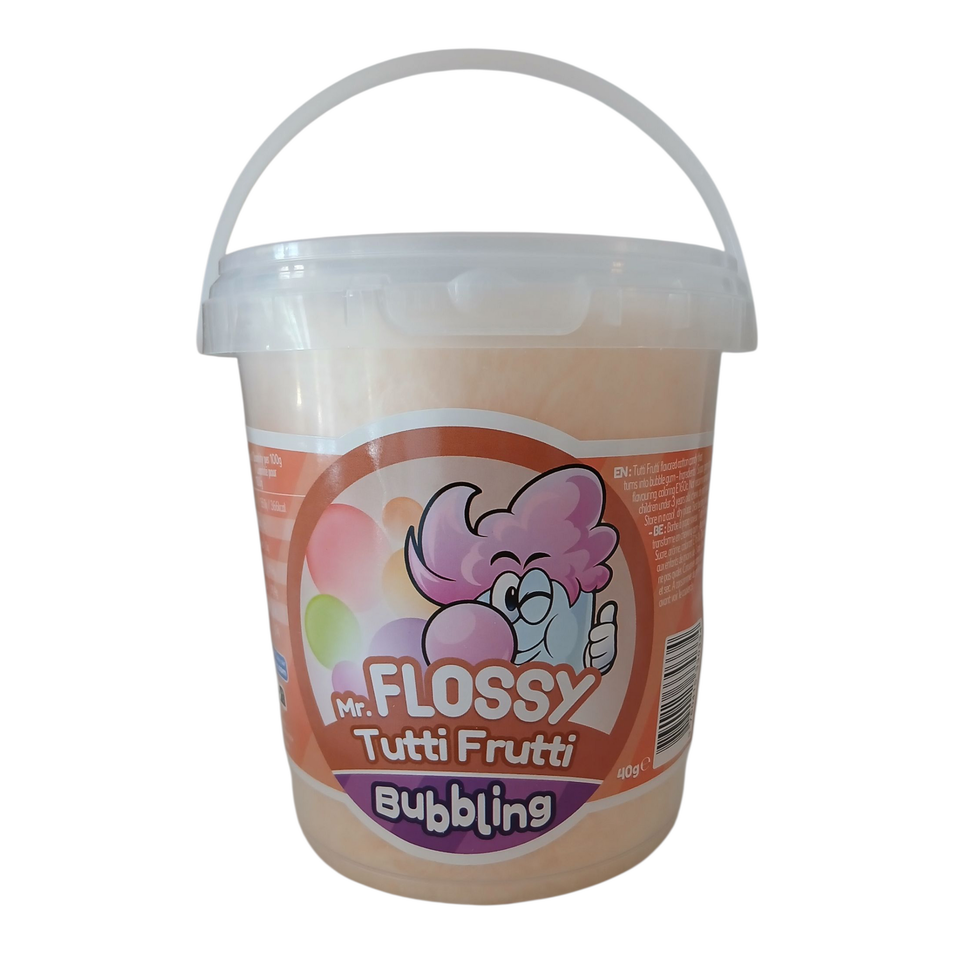 Barbe à papa gourmande à la vanille façon crème glacée, dans un pot de 40 g. Format pack de 12 Mr Flossy – une expérience aérienne et sucrée à chaque bouchée 🍭